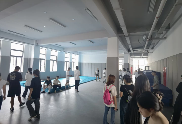 在学院领导、体育专业教师,以及班导的带领下,新生们有序进入体操馆。一踏入馆内,宽敞明亮的空间、先进齐全的设施立刻吸引了大家的目光。