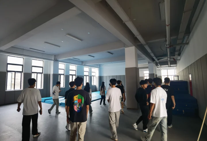 专业教师首先为新生们介绍了体操馆的基本情况,包括其建筑面积、功能分区以及所能开展的体育项目。这座体操馆不仅拥有标准的体操比赛场地,还配备了多个训练区域,涵盖了竞技体操、健美操等多个项目,能够满足学生们不同的学习和训练需求。同时,馆内还配备了先进的训练设备和安全防护设施,为学生们的训练提供了有力保障。