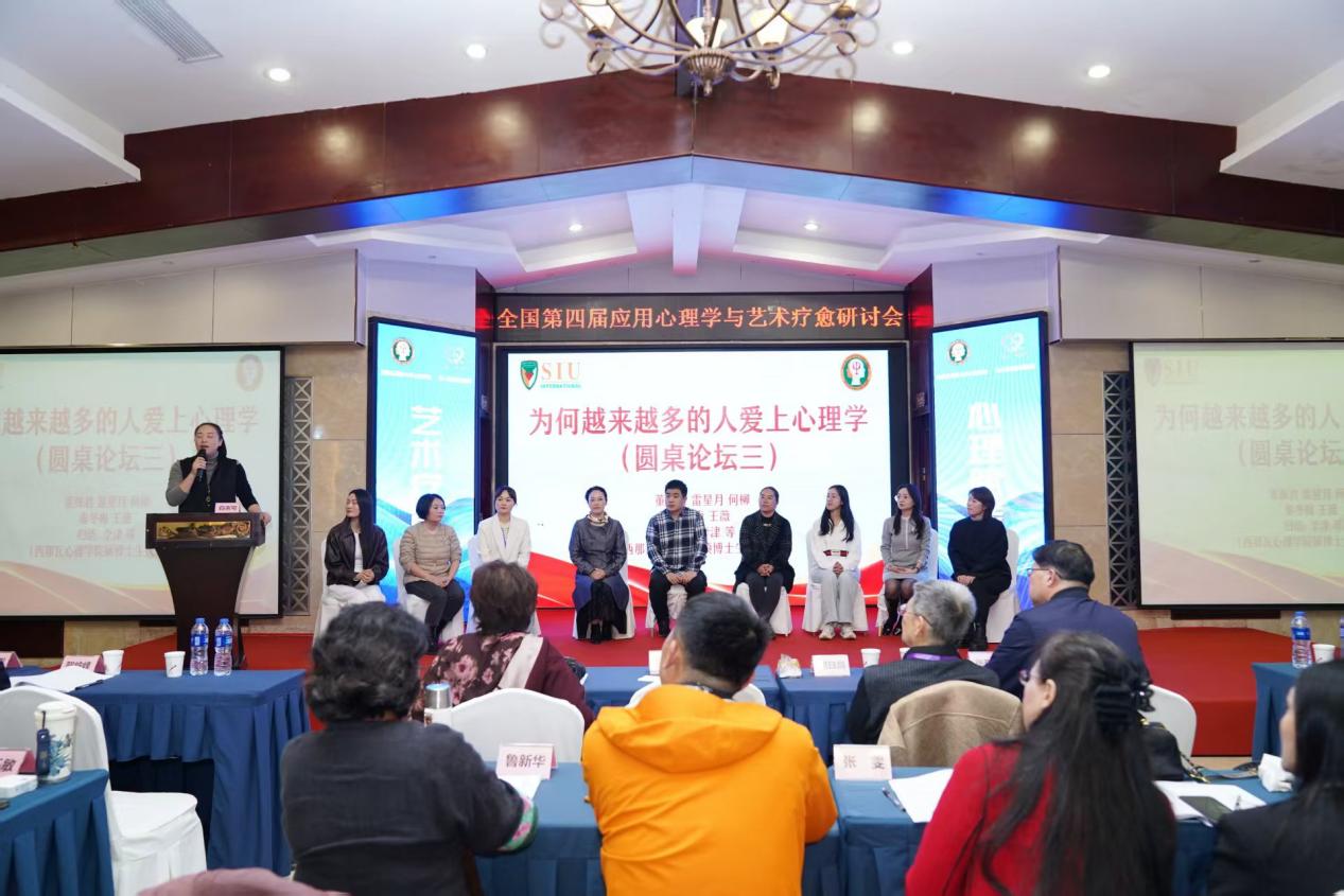 10 月 25 日,全国第四届应用心理学与艺术疗愈研讨会在成都隆重举行。绵阳城市学院现代服务学院健康服务与管理教研室主任何俐岳副教授受邀主持 “为什么这么多人会爱上心理学”主题圆桌论坛,与来自全国200余位高校代表、心理领域专家共话心理学大众化的时代图景。