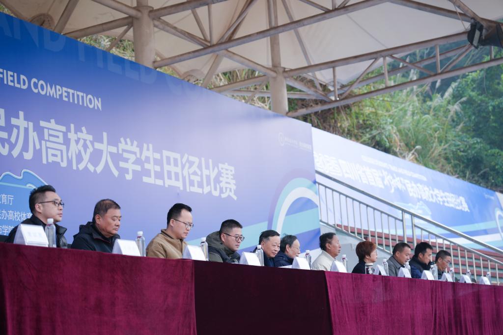 11月21日上午,四川省首届“行知杯”民办高校大学生田径比赛在绵阳城市学院游仙校区运动场正式开幕。原四川省教育厅体艺卫处处长、四川省民办高校体育联盟顾问苗建平,四川省民办高校体育联盟理事长、组委会赛事技术代表徐明,四川省民办高校体育联盟秘书长王磊义、办公室主任韦立阳,重庆市民办高校体育联盟常务副秘书长、重庆城市科技学院体育与大健康学院院长助理陈志强,重庆城市科技学院体育与大健康学院公共体育部副主任田汜明,绵阳城市学院党委书记王俊佳、执行校长林秀英、副校长左申兵、校长助理蒲施宇等领导嘉宾出席。来自全省20所民办高校的参赛代表齐聚赛场,共同开启了本次体育竞技盛会。