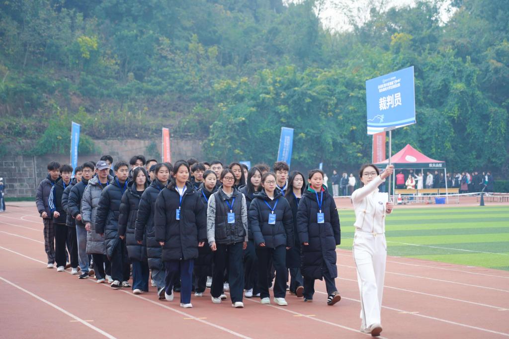 绵阳城市学院校长林秀英发表致辞。她代表学校两万余名师生,向莅临指导的领导嘉宾、远道而来的参赛队伍表示热烈欢迎,向筹备赛事的工作人员与志愿者致以感谢。林校长指出,党的二十届四中全会为教育事业发展指明了方向,民办高校肩负着培养时代新人的重任体育是“强健民族根基、铸就奋斗精神”的重要载体。绵阳城市学院自2006年建校、2021年转设以来,始终坚守“有教育理想的人、办理想的教育、培养有理想追求的人”的办学理念,作为“四川省高校党建工作示范培育单位”和全省民办高校首个“三全育人”综合改革试点单位,学校深耕“3331”人才培养模式,构建了贯通职教与本科的教育体系,为学生铺就了多元成才路。过去一年学校学子在“第十五届全国运动会”“2025年四川省健身气功锦标赛”中屡创佳绩,正是体育育人成效的生动体现,承办首届“行知杯”是荣誉更是责任。她表示,希望以此次比赛为媒,搭建起民办高校交流合作的平台,让青春汗水在赛道挥洒,让友谊之桥在竞技中筑牢。同时,她向全体参与者提出三点期盼:愿运动员严守规则、挑战自我,赛出风格与水平;愿裁判员与工作人员坚守岗位、公正服务,保障赛事有序;愿各院校深化交流、互学互鉴,共筑民办高校团结奋进的盛会。