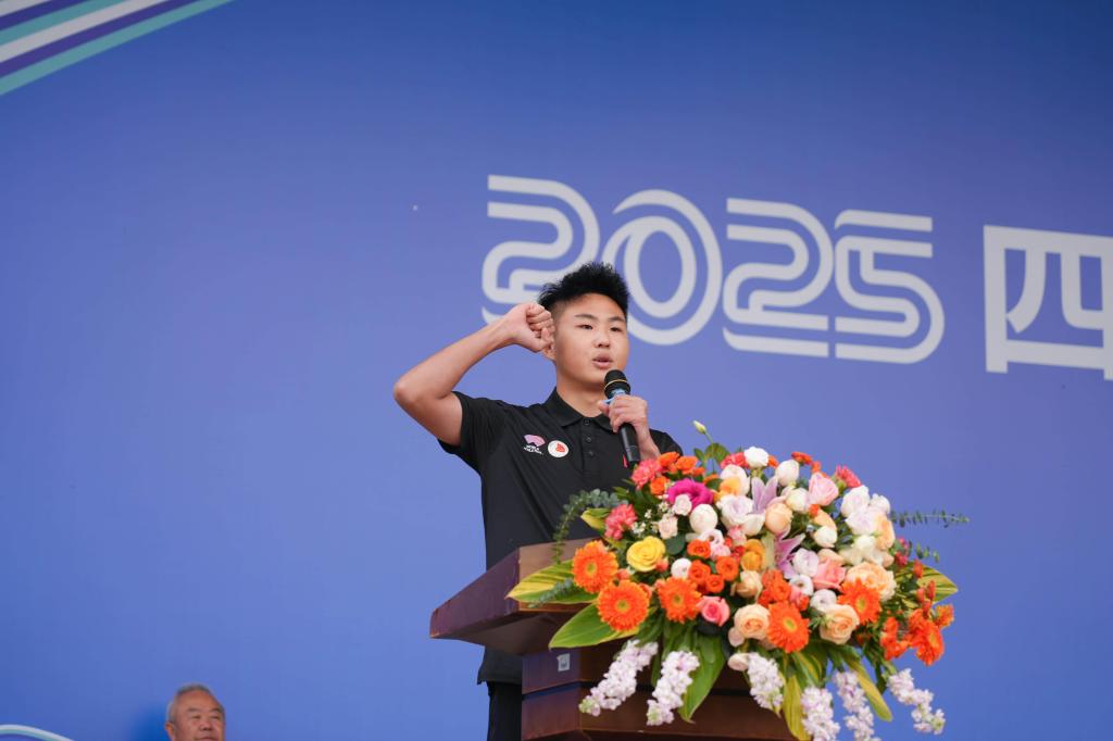 运动员代表宣誓,保证尊重对手、服从裁判、文明参赛,以最佳状态展现高校学子的体育精神。