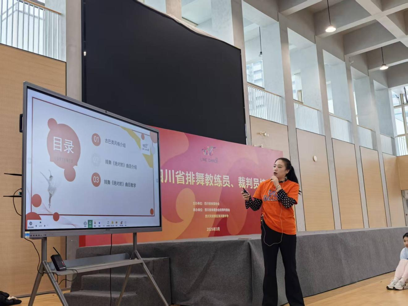 3月21日至22日,2026年四川省排舞教练员、裁判员培训在成都举办。本次培训由四川省体操协会、四川省排舞运动推广中心主办,全省160余名大中小学排舞从业者参训,覆盖近100家单位。我院健康服务与管理教研室主任何俐岳副教授受邀担任授课导师,将中医康养理念与排舞运动深度融合,为参训学员提供专业指导。